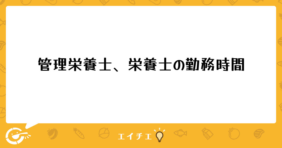 また、現場に入っていない栄養士ですが、栄養士と管理栄養士の勤務時間帯に差はありますか?同じような、勤務体制の方、こちらの方も、教えてください。
