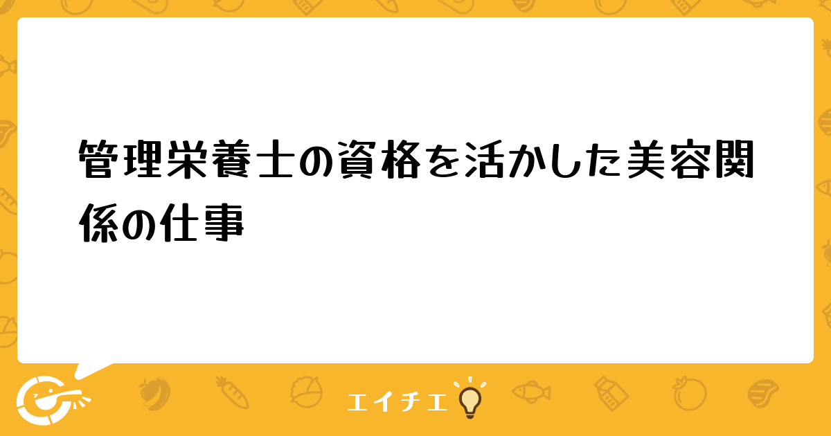 私は管理栄養士の資格を活かして美容の仕事をしたく、色々調べているのですがあまり見つからないため、教えていただきたいです!