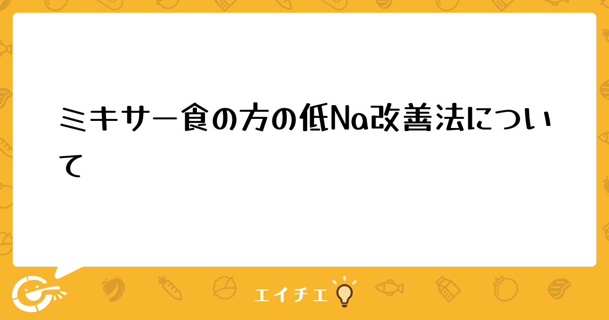 タイトル通り、ミキサー食の患者さんの低Na血症改善法についてアドバイスいただきたいです。