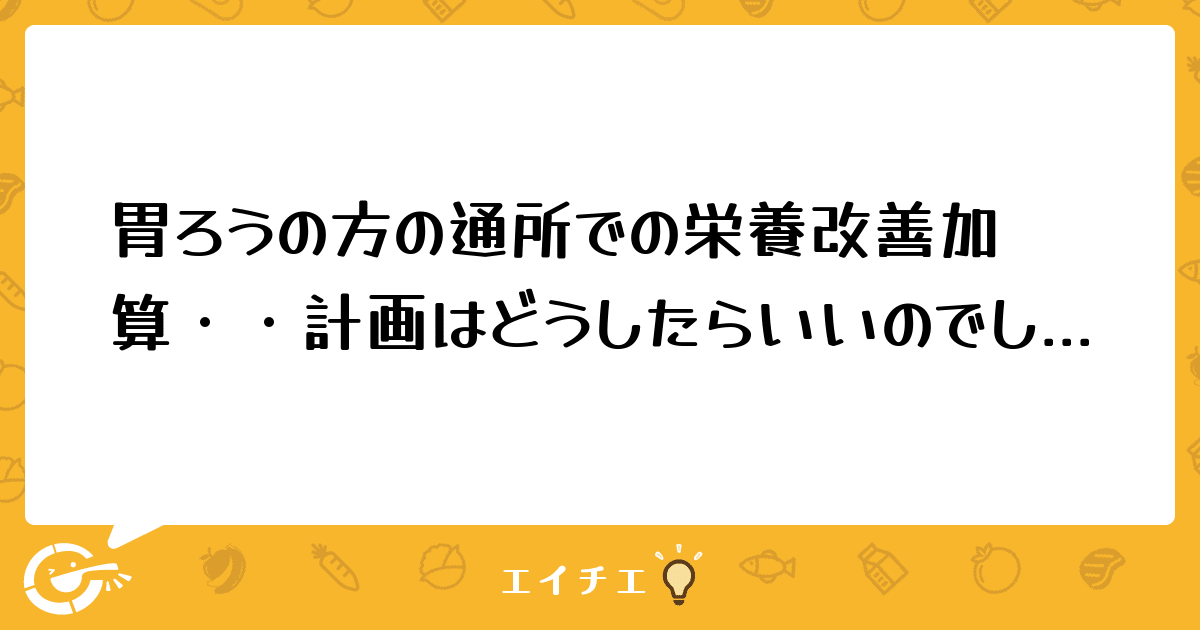 栄養改善加算をとっていた利用者様が、体調を崩され入院をし、経口摂取が難しくなり(入院中も誤嚥性肺炎を繰り返されるため)、胃ろうの手術をして退院され、またデイサービスをご利用となります。