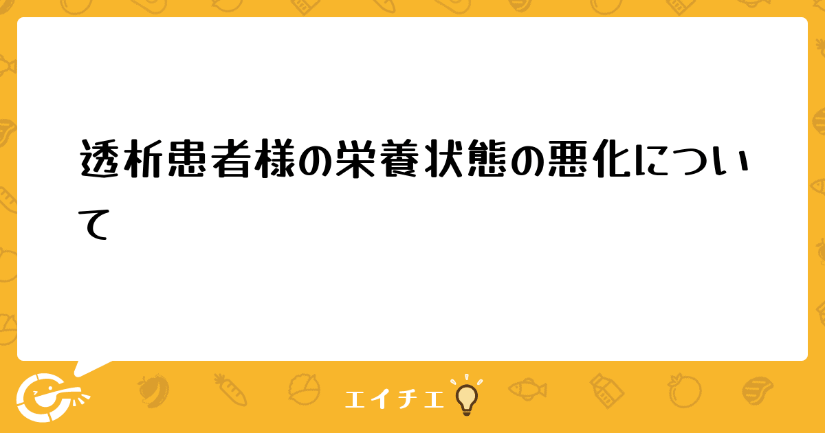 透析患者様の栄養状態はどのように判断されていますか?
