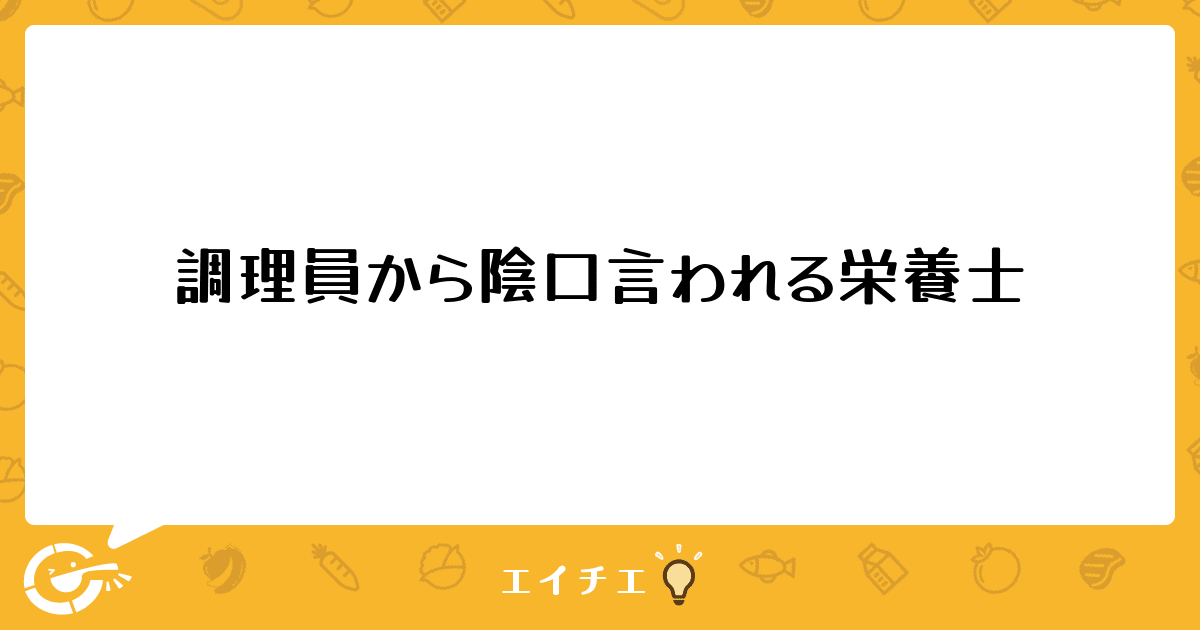 、ギリギリ間に合ってますが、嫌々な感じと私は栄養士だからという態度が出てると調理員からクレームの嵐。でも直接言えないため、いない所で愚痴の言い合いになってしまい雰囲気が悪くなっています。