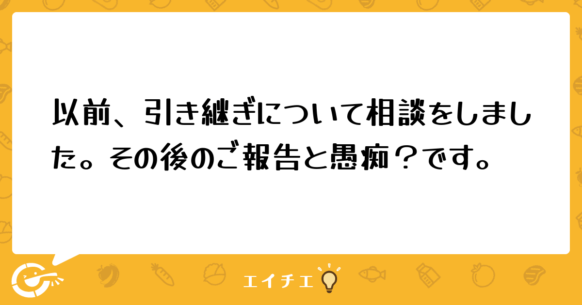 以前、引き継ぎなどで相談をしました。個別にお返事できなかった方、申し訳ありません。また、コメントを下さった方々、ありがとうございました。