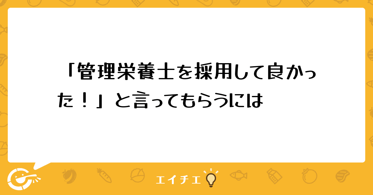 「管理栄養士を採用して良かった!」と言っていただくには、どのような姿を目指せばよいでしょうか