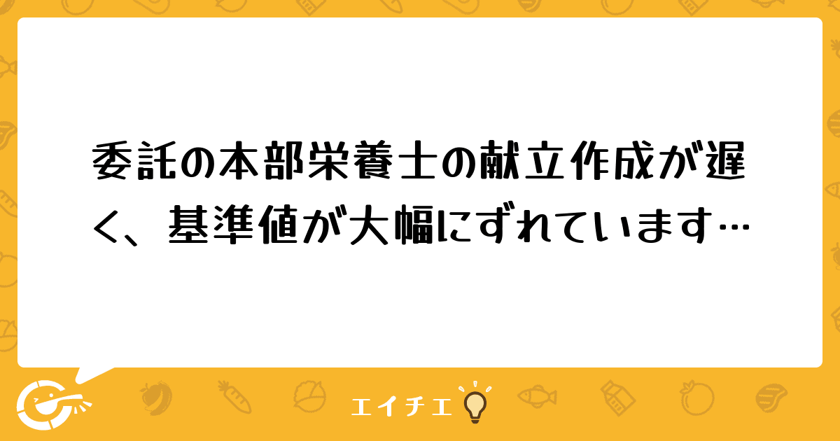 しかし、その栄養士の献立の作成がとても遅く、内容の確認ができません。1か月後の献立提出を依頼しましたが、今5/18からの献立を作っているとのことで、早くできないとのこと。