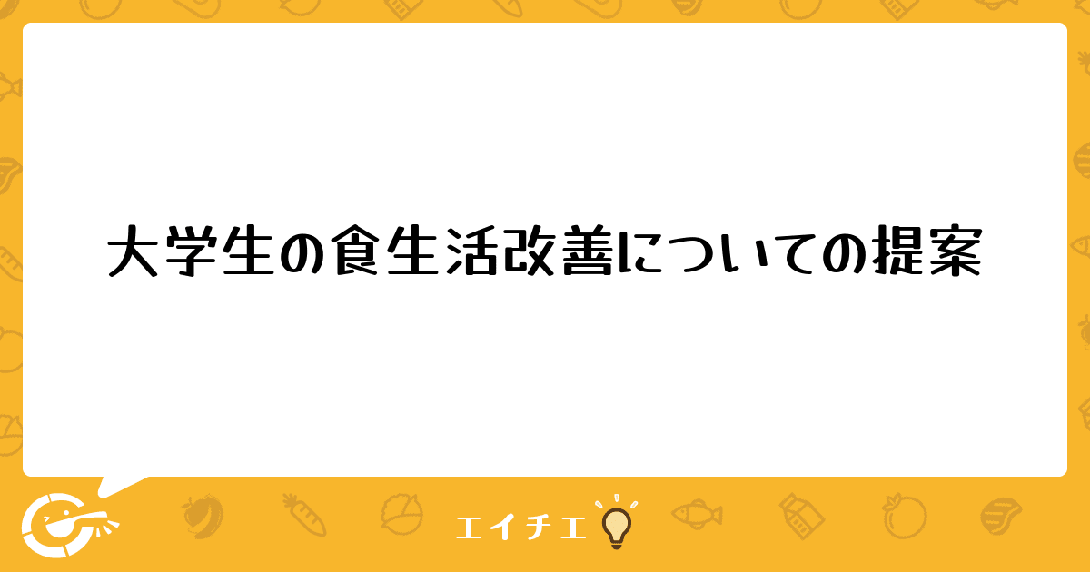 公衆栄養学の授業で「大学生の食生活改善について提案せよ」という課題が出され,案が思い浮かばず困っています.どういった案を出せば良いかアドバイスをお願いします.