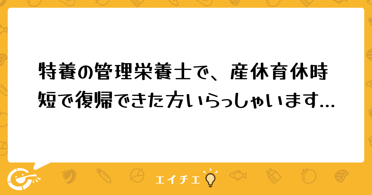 介護士さんたちは希望通り、育休後、時短で復帰されています。ですが、施設管理栄養士は一人で、給食業務は委託ですので、私の仕事をカバーしてもらうわけにはいきません。今でさえ残業をしており、家に着くのは20時とかです。