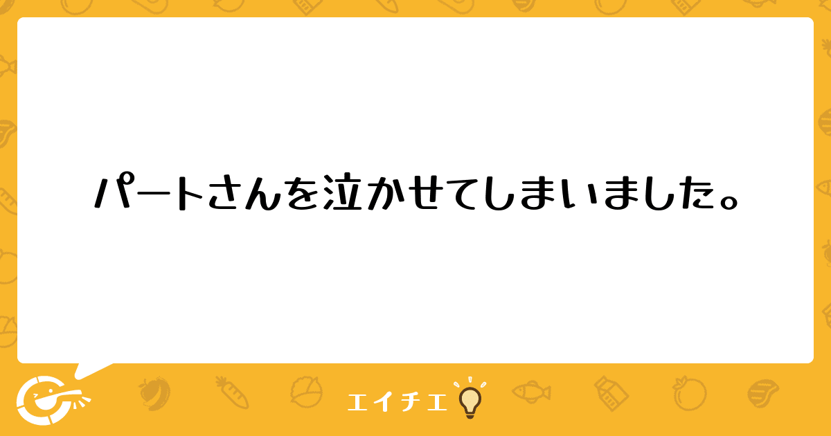 モヤモヤしているのは、それで泣くか?って事だったのと、調理員の男の子を20分以上も、私用で手を止めさせたこと。