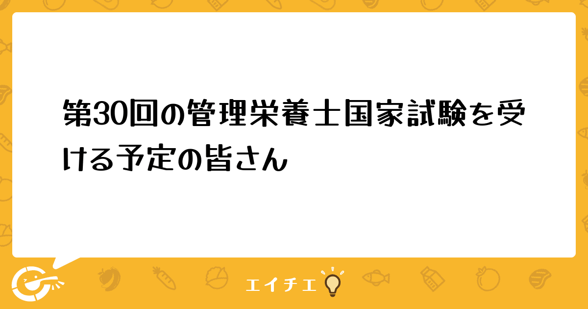 第30回の管理栄養士国家試験を受ける予定の皆さん、今、頑張って勉強の日々を送っているみなさん、ご苦労様です。