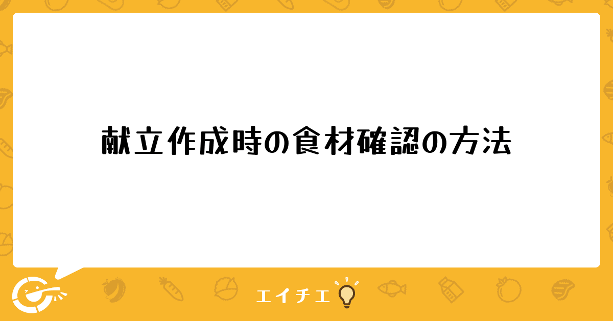 最近、食材の重なりについて指摘を受け今までのやり方ではだめだと思い皆さんのアドバイスをうかがえたらなと思っています。