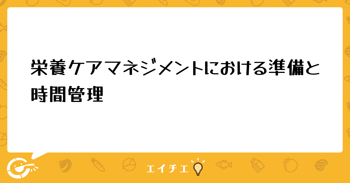 必要なファイル作り(給食経営でなら検食簿や献立表)、日々の時間管理について、どのようにしたらいいのか分からないです。