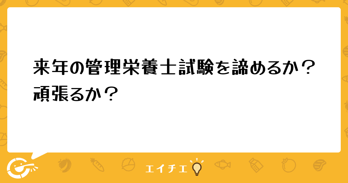 管理栄養士国家試験を諦めるべきか、来年の国家試験まで頑張るか、意見を聞かせていただきたいです。