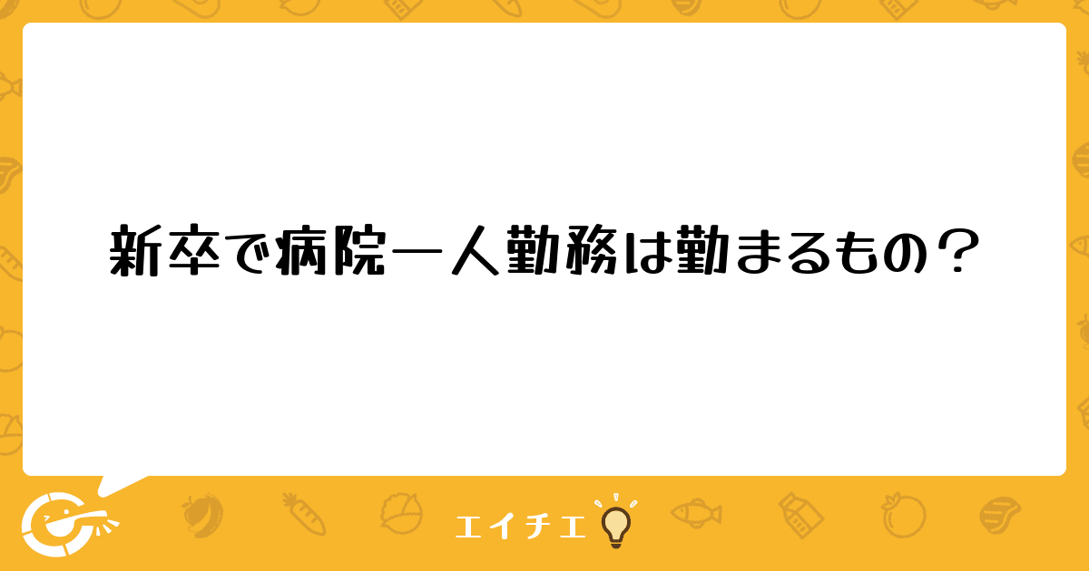 新卒で病院での一人勤務というのは勤まるものものなのでしょうか?