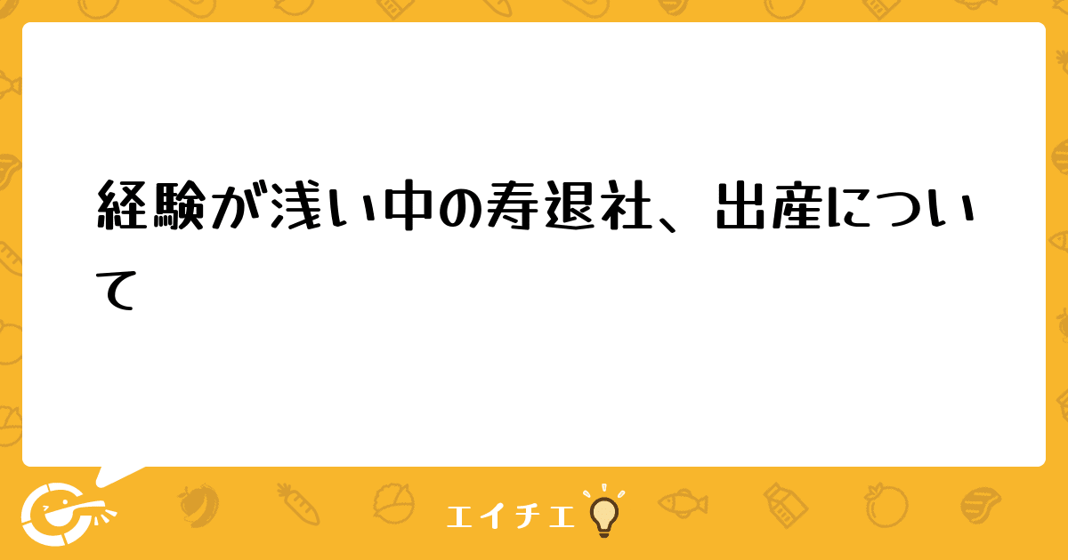 もし、出産するとしたら相手が地元にいるので、会社は退職しなければいけません。相手の年齢的にも私が将来的に働かなければ難しい状況のなか、経験も浅く子供を育てた後の再就職ができるのかととても不安です。