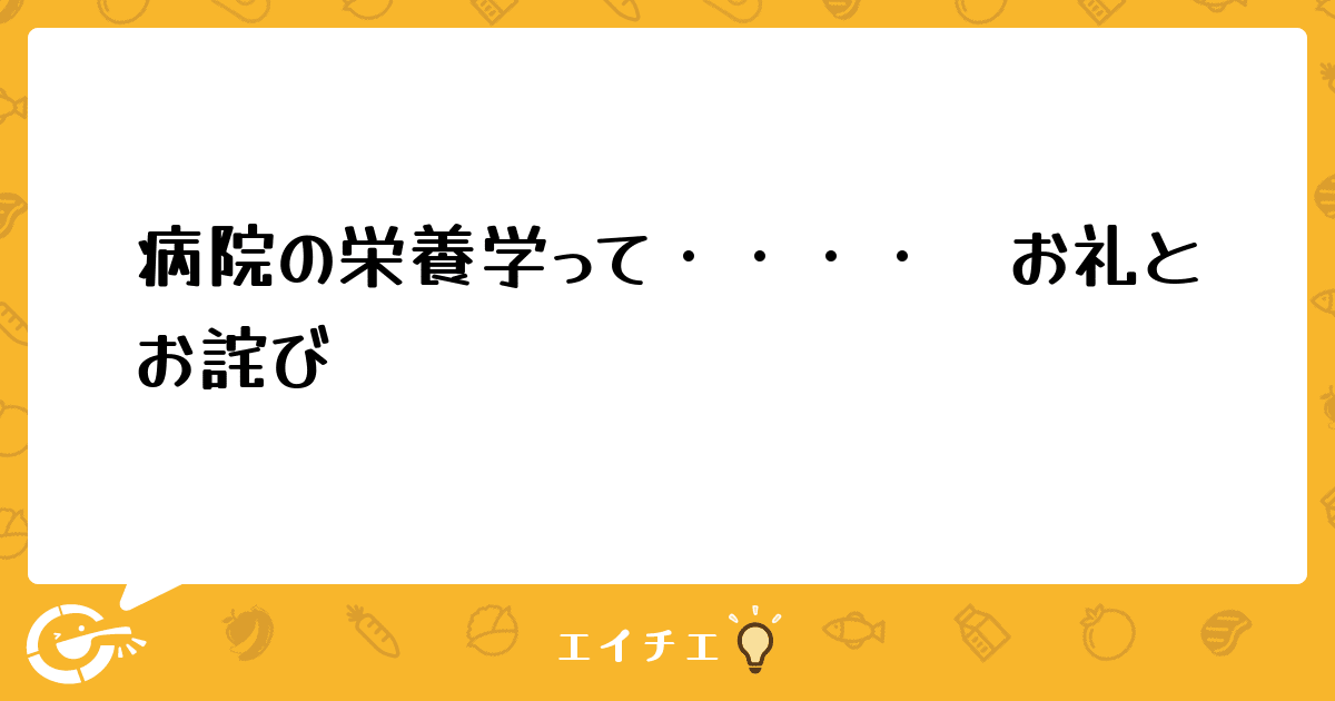 また、病院の栄養学のことについてですが