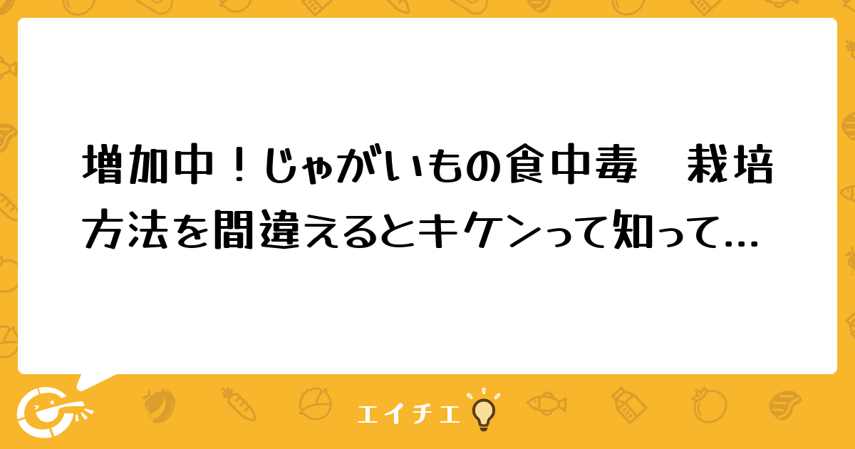 じゃがいも栽培には「土寄せ」が必要だなんて、私知らなかったです。97年以前は発生ゼロだったらしいので、昨今の無知な栽培方法→そのままふかして皮のまま食べる&ポテトフライ(170℃の油でもソラニンは破壊されないみたい)→イテテテ・・・みたいな感じなのだろうか。重症化はない、とかいてあるが免疫力の低い人だとどうなるかわからない。