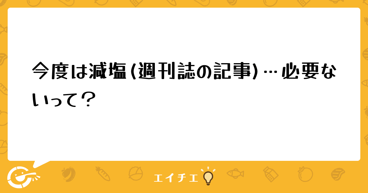 『ねぇねぇ、減塩って気にする必要ないって雑誌記事があったけど…』