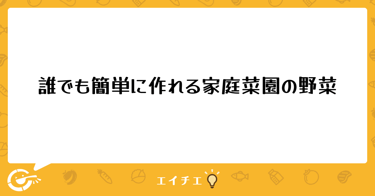 そのため食に精通した栄養士さんなら家庭菜園に詳しいだろうと書き込みました。簡単な、できれば土用意、肥料、苗を用意したら植えて水挙げるだけ、位の簡単なものがいいです←