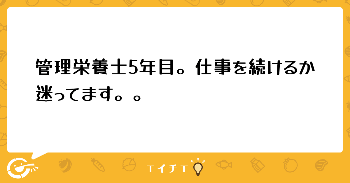 5年目になりましたが、栄養士は施設にひとりなので手探りで仕事をしていてすごく不安です。違う施設の先輩に聞いたりすることも多々あるのですが、施設の勝手も違うので最終的には自分の判断。色々な判断や指示を求められるのですが、自信が持てません。前任の先輩栄養士には5ヶ月間指導を受けましたが…