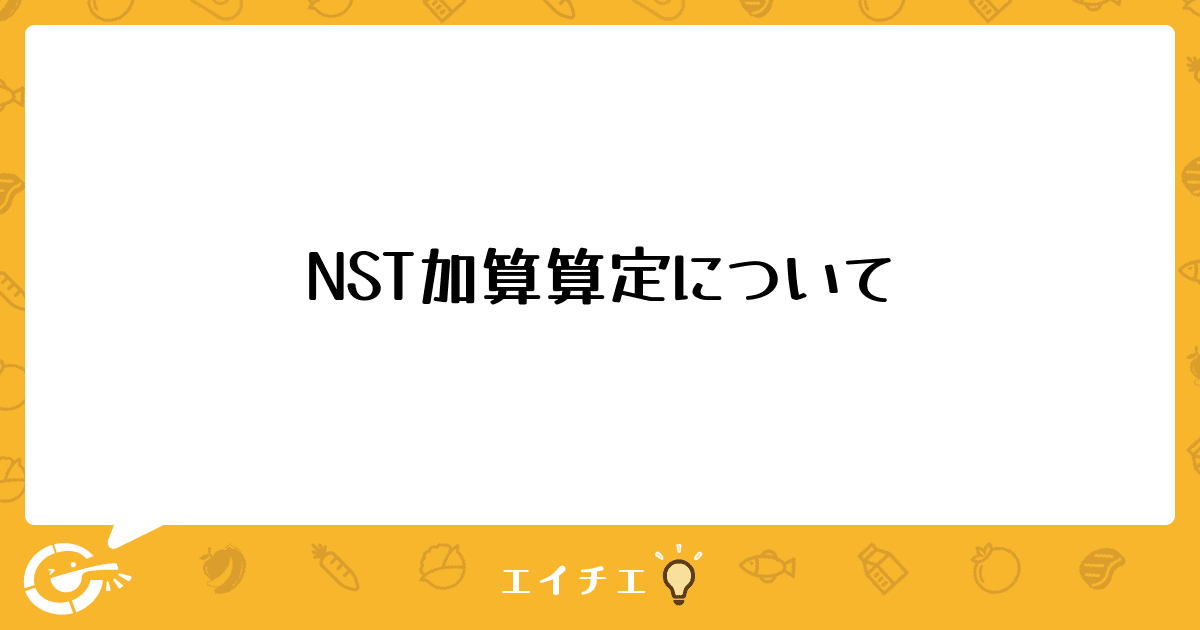 NST加算算定に向けて動きだしている中、疑問点があり今回みなさんに相談することにしました。