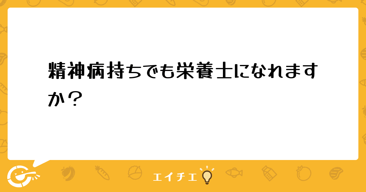 私は対人恐怖症と双極性障害という精神病持ちです。20年前から患っているので、もう治らないかと思います。それでも、何とか苦難を乗り越え、管理栄養士の資格も取得しました。