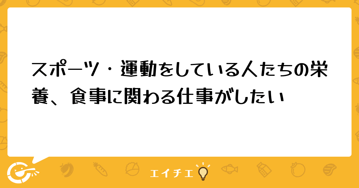 ただ、私は病院や福祉施設などで栄養士として献立作成や栄養指導等をしたいのではなく、運動をしている人たちに対しての栄養指導や栄養管理をしたいと思っており、そのためにはまずどこで働くべきなのかということに悩んでいます。