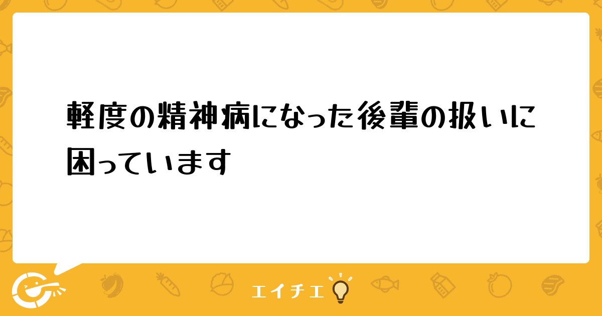 後輩は病棟担当で、管理計画書と入院患者の指導が主でしたが、今年の初夏に精神病を打ち明けられ、年度内の退職の申し出もありました。
