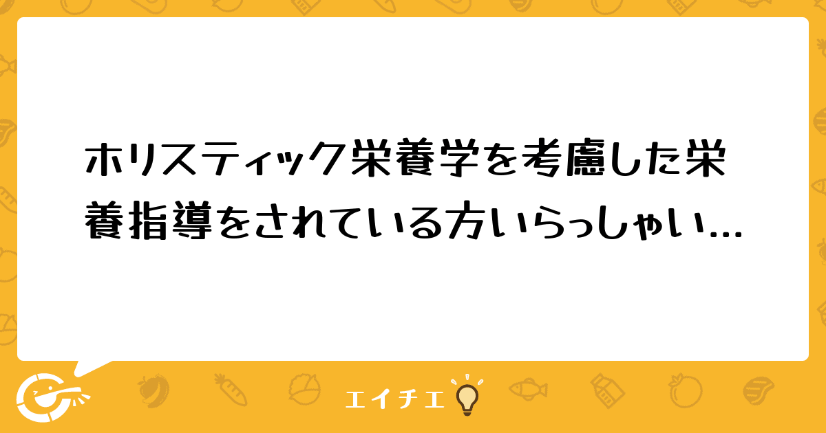 日本でのホリスティック栄養学の認知度や、栄養士・管理栄養士さんの意識など、色々とご意見いただけると幸いです。