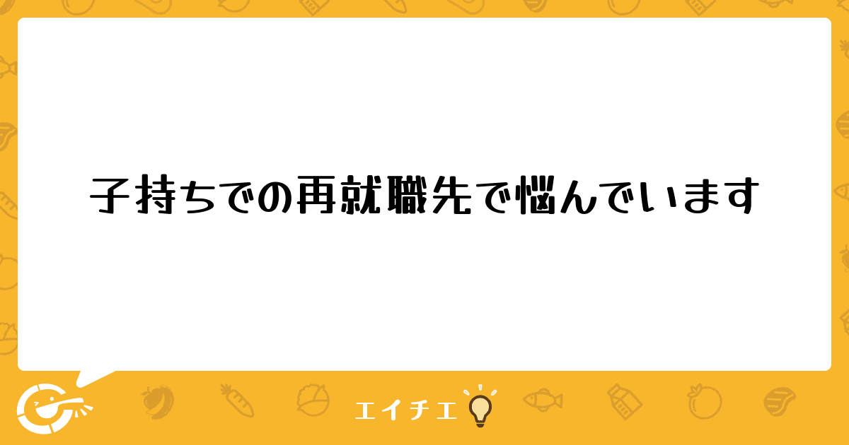 現在1歳の子どもが一人います。金銭的に余裕がないため再就職を決意しましたが悩んでいます。