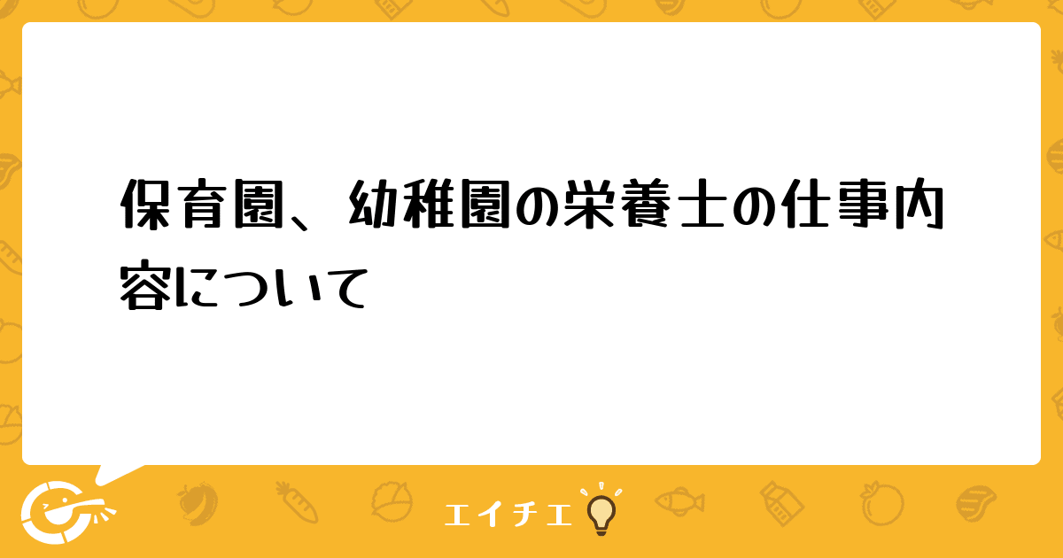 栄養士って保育園、幼稚園ではこんな立場なのでしょうか?