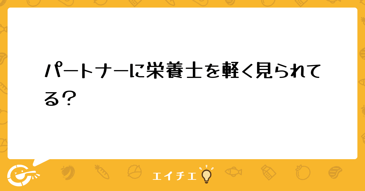 でも栄養士の話をスルーする(バカにしている?)のは20年以上管理栄養士として勤務している私のプライドが非常に傷ついてしまって。他の人ならまだしもパートナーに理解されないって…。