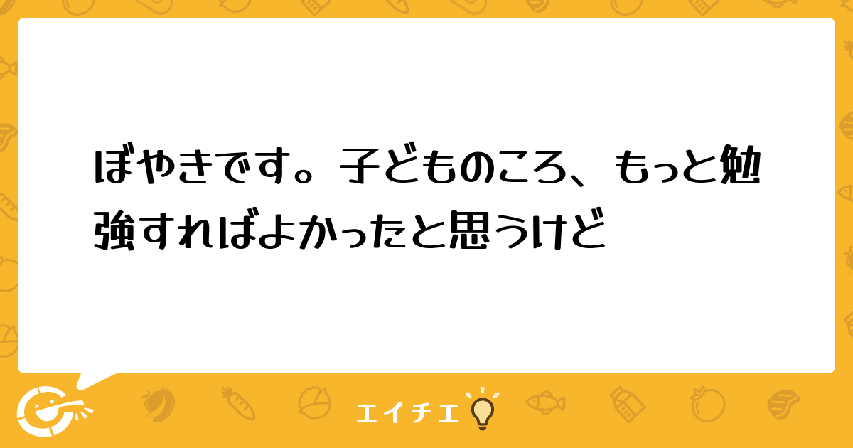 子ども時代にもうちょっとがんばっただけでも今の人生がもっと違っていたかもしれない、と後悔している毎日です。