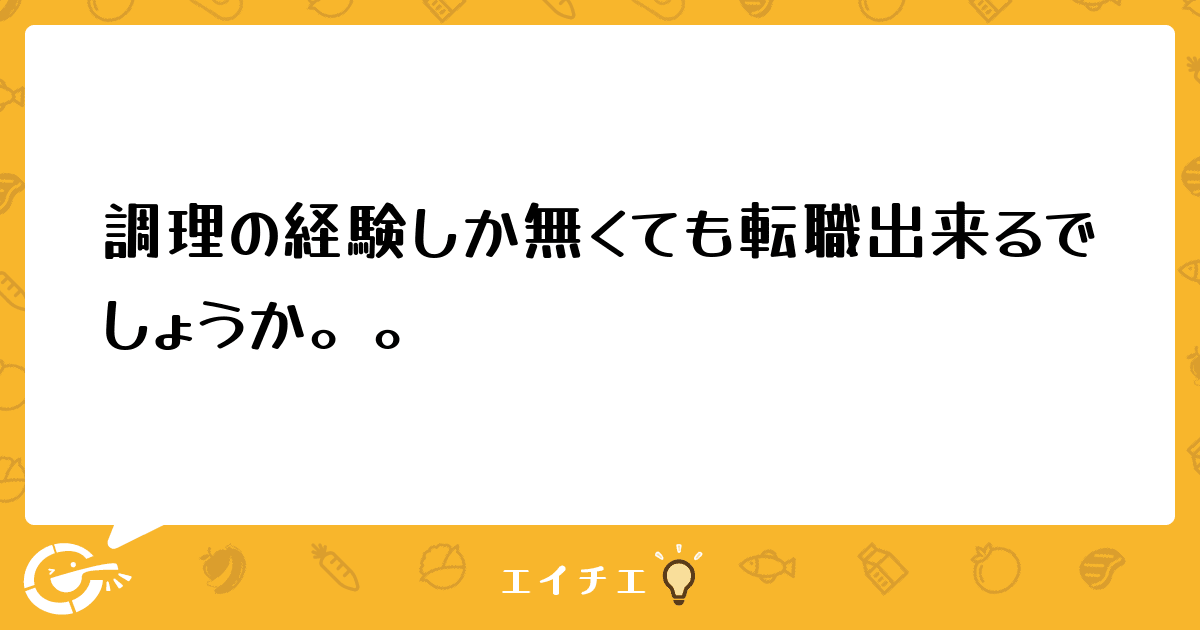 ほぼ厨房業務だけで委託から直営などに転職された方などいらっしゃればどのように転職されたかアドバイス頂けたら嬉しいです。よろしくお願いいたします。