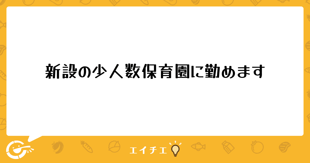 4月から新設の少人数保育園(園児17名。職員10名)に勤めます。3月から調理中心で勤務になったのですが、今現在は元々ある保育園で、調理と栄養士さんの事務補助的な立場で働いています。