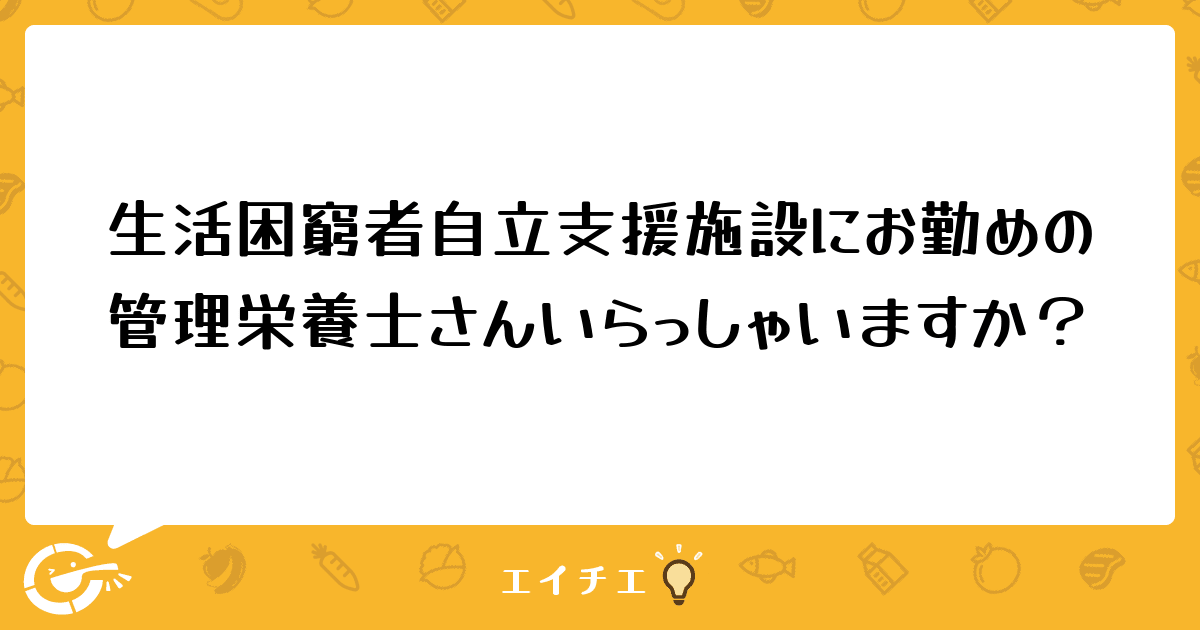先日、生活困窮者自立支援施設の管理栄養士として採用をいただきました。業務内容は献立作成・栄養相談で、厨房は委託給食会社が入るの調理業務は全くありません。