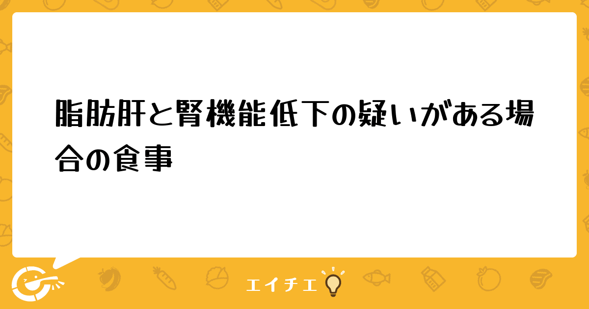 タイトル通りなのですが、脂肪肝と腎機能低下の疑いがある場合の食事提案は、どのようにすべきでしょうか。