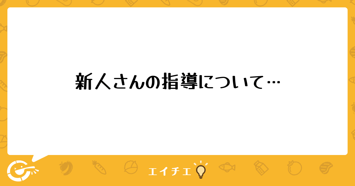 新人さんが1人(調理師)4月1日から入社され2年目の私も早速指導係として勤務に配属されています。今は人手不足なので、一人の人が固定で指導にあたるのではなく、交代で毎日色んな人が指導にあたっている状態です。もう今日で2週間程が経過し、同じ勤務にずっと入っていて結構覚えもいいようだったので私は本日初指導だったのですが、あまり何も口出しせずに本人に考えて作業をしてもらおうと考えておりました。が、しかし、いざついてみると傍から見ているよりも覚えていない部分が多く、さすがに2週間経てば覚えておかなければというような内容もぼちぼちといった感じだったのです。