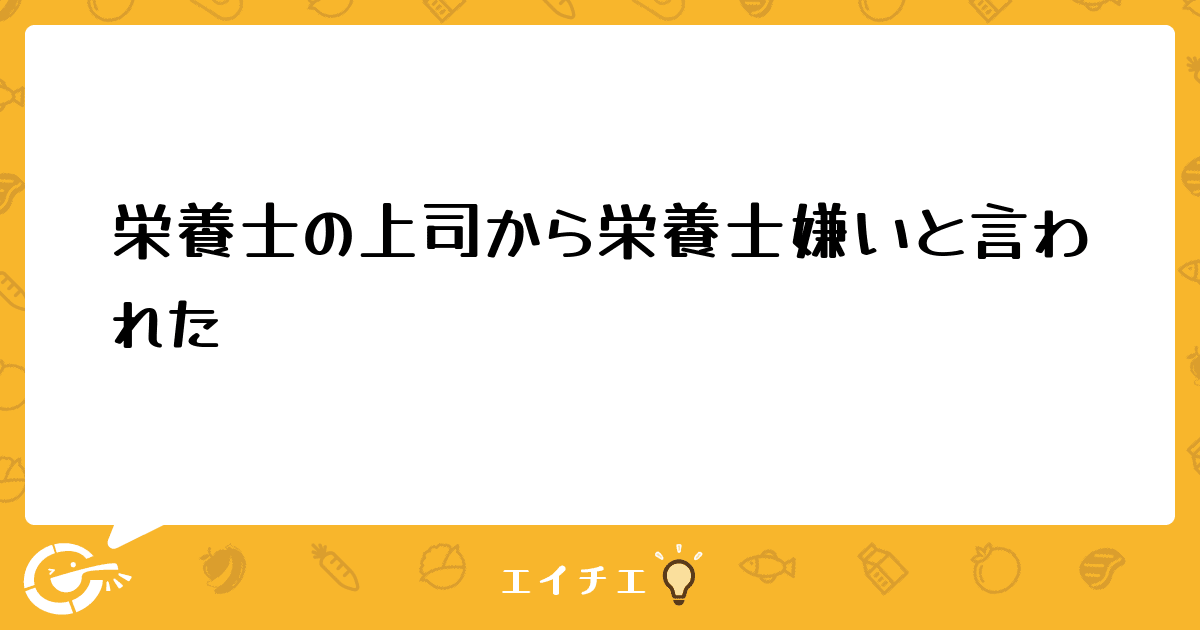 {emoji=,E472,}栄養士の上司から「管理栄養士嫌い」と言われた{emoji=,E472,}