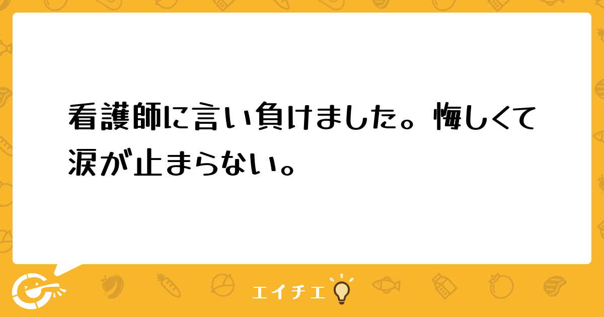 先日、ナースに栄養面のことで言い負かされて(上手く言い返すことができなくて)ずっとウジウジ悩んでいます。