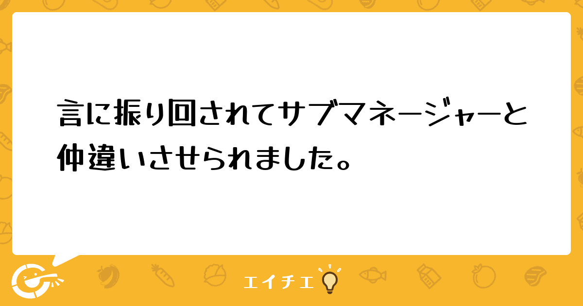 応援に絡む話で、主任から私に持ちかけて応援を断って来たのに、サブマネージャーが、ソコの現場を嫌っているから、主任が回してやってくれ。応援は断ってやってくれ。と言った。と言う話になっていました。 サブマネージャーと私はまだ半年程度の付き合いです。そこの主任とサブマネージャーも一月ほど付き合いです。