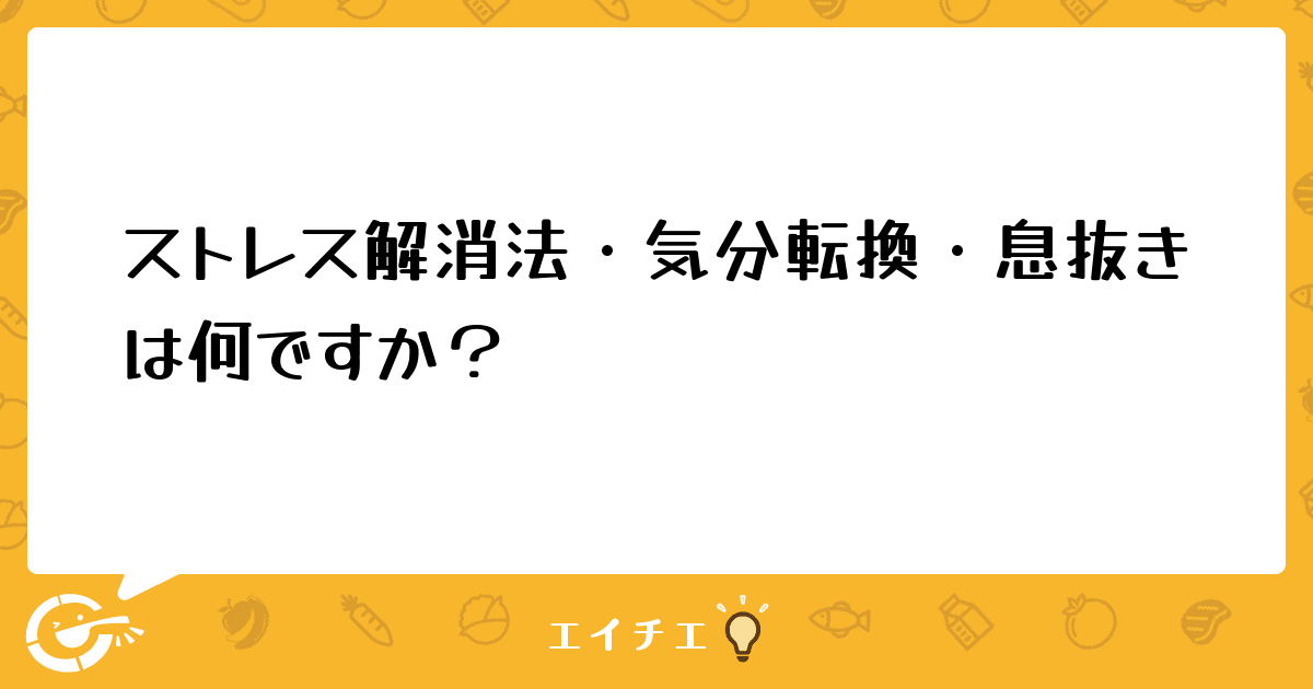 そこでみなさんのストレス解消法や気分転換、息抜きを教えてください!
