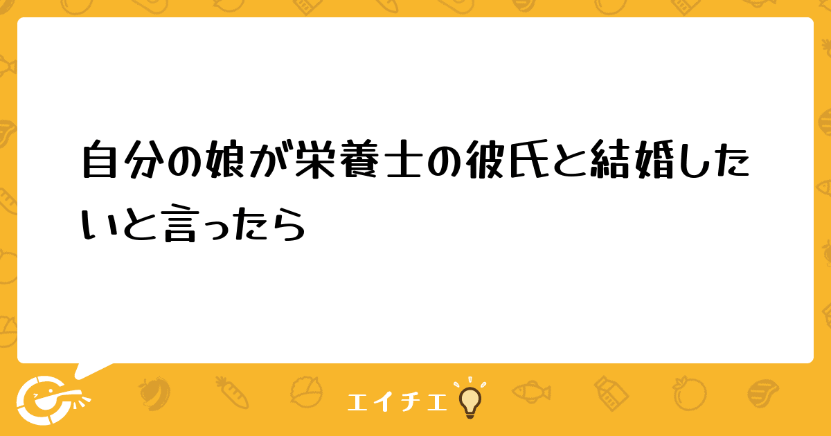 自分の娘が栄養士の彼氏との結婚に「反対される方」の率直なお話が聞きたいです。