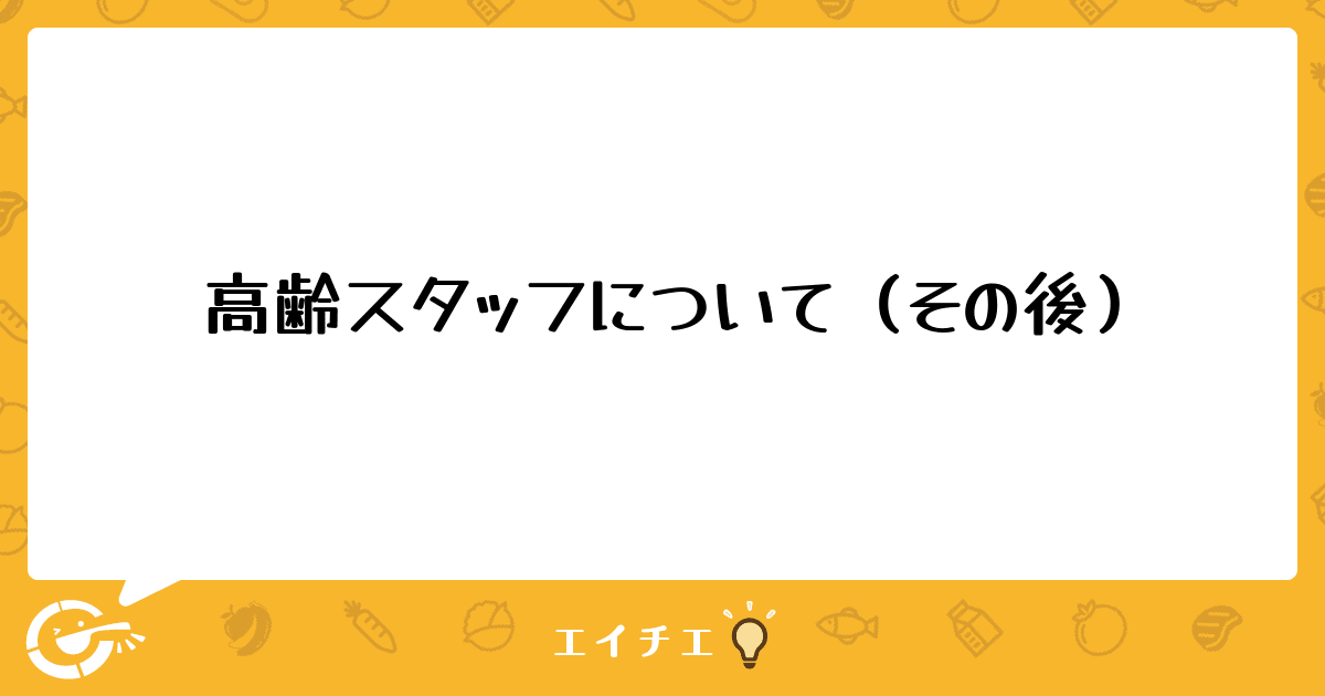 以前、高齢な厨房スタッフについてというタイトルで投稿させていただきました。