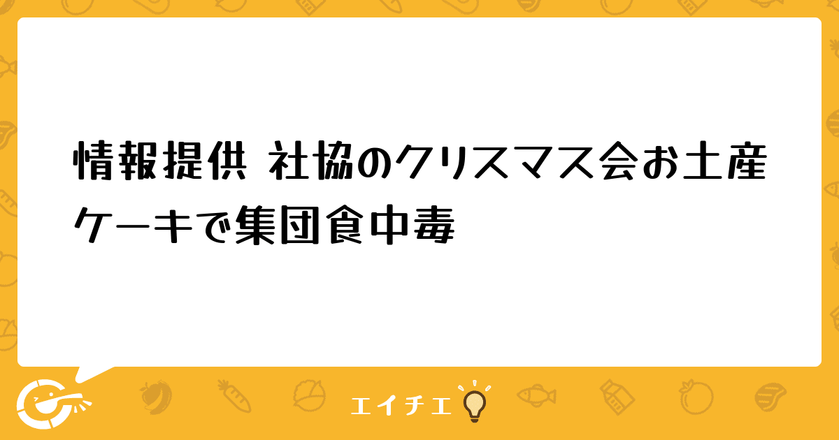 茨城県石岡市で社会福祉協議会が開いたクリスマス会の参加者82人が土産に持ち帰ったケーキを食べた後から、下痢や嘔吐など症状を訴えていたことがわかった。患者や製菓店の調理スタッフからノロウイルスが検出されたことから、保健所は土産のケーキが食中毒の原因だと断定し、店に対し営業禁止を命じた。