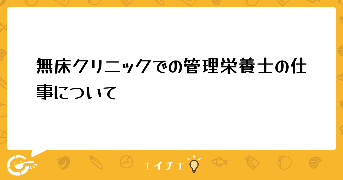 同じような無床のクリニックで働く管理栄養士さんは栄養指導が無い時間はどのような仕事をしているのか教えて頂きたいです。