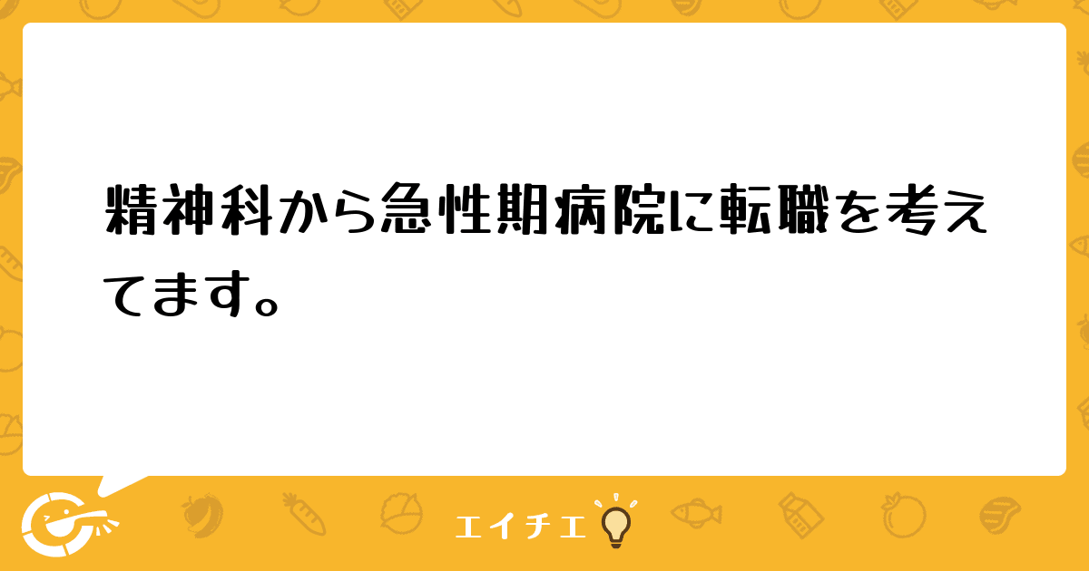 精神科病院から某市内中核の急性期病院への転職を考えております。