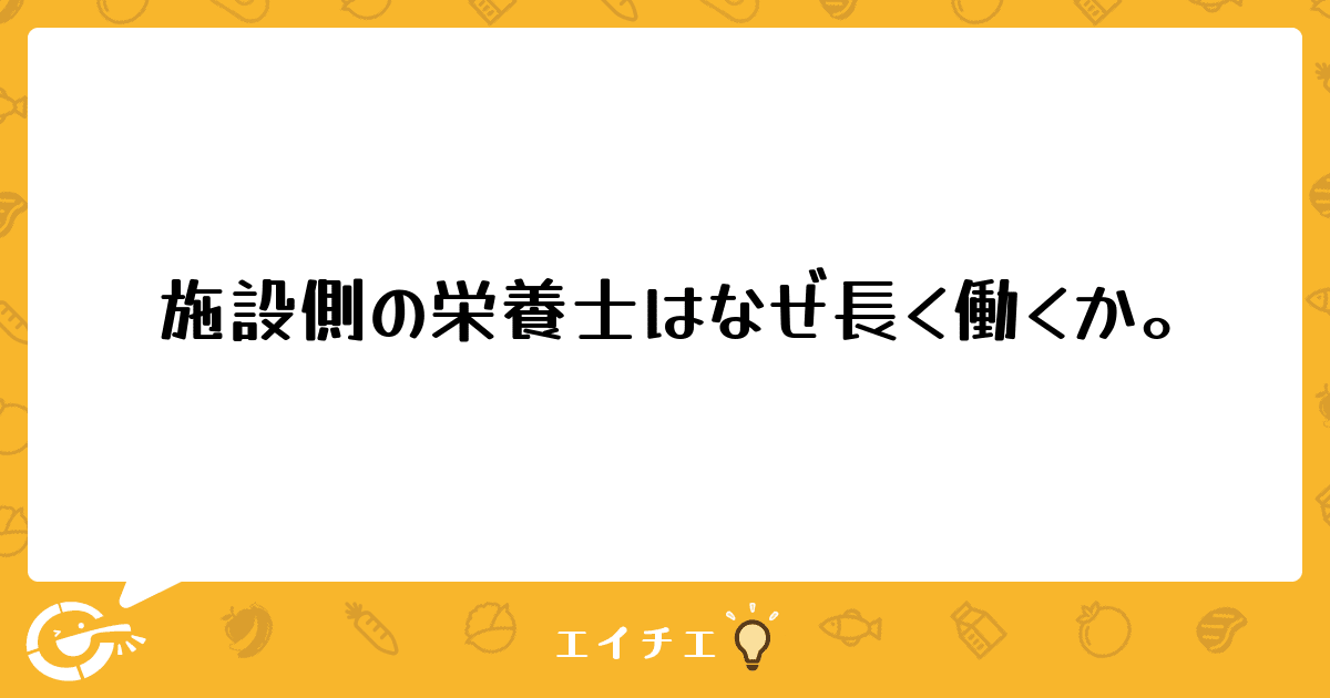 ふとした疑問なのですが施設側の栄養士はなかなか求人が出ていないですが、みなさん我慢して働いてるんでしょうか?こんなに辞めていく中で栄養士だけ我慢しているから求人が出ないのか、ツテで決まっているから出ないのか?