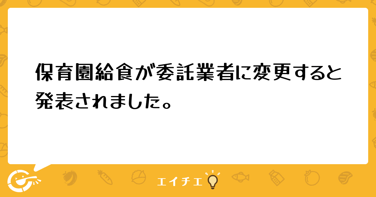 保育園の栄養士として採用され1年経ちましたが、理事長より給食作りを委託業者に変更
