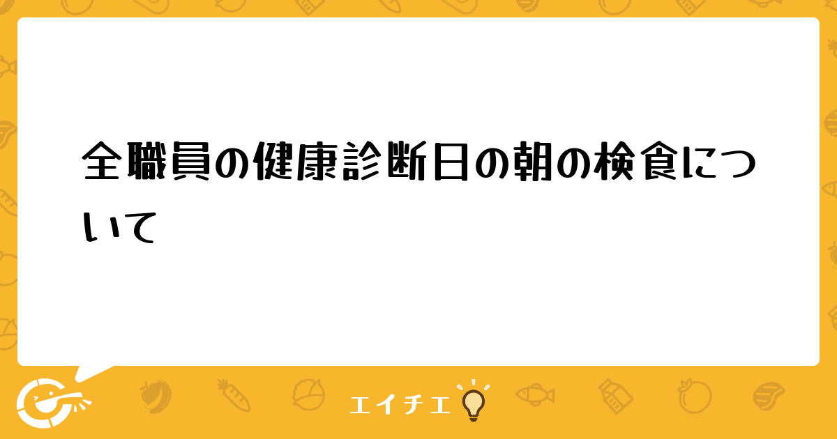 今度施設全職員の健康診断があります。そのため、担当の介護士も朝に食事を取ることができない、他の職員も同様で検食ができない状態です。