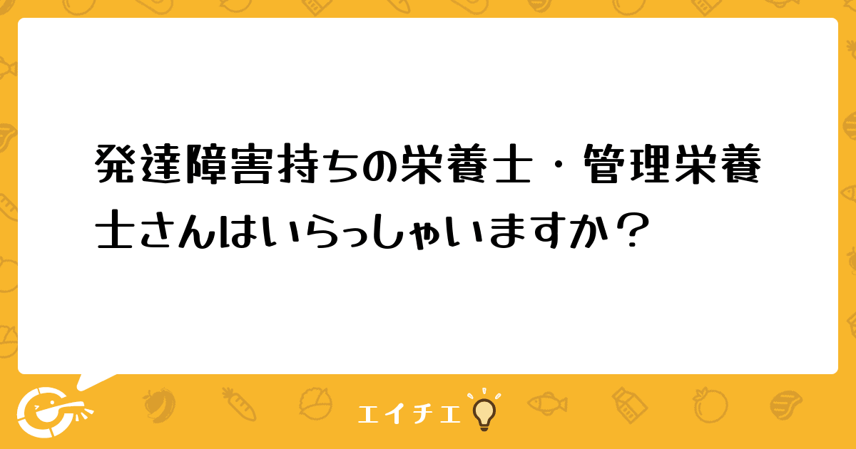 私は新卒で入社したものの発達障害の特徴と業務の傾向が合わず仕事が出来ずに辞めてしまいました。そして現在転職活動中なのですが同じように発達障害を持った方でも栄養士・管理栄養士の仕事はできるのか?と思い質問を投稿しました。